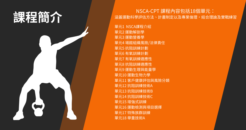 美國國家肌力與體能協會 NSCA-CPT 課程涵蓋 18 個單元