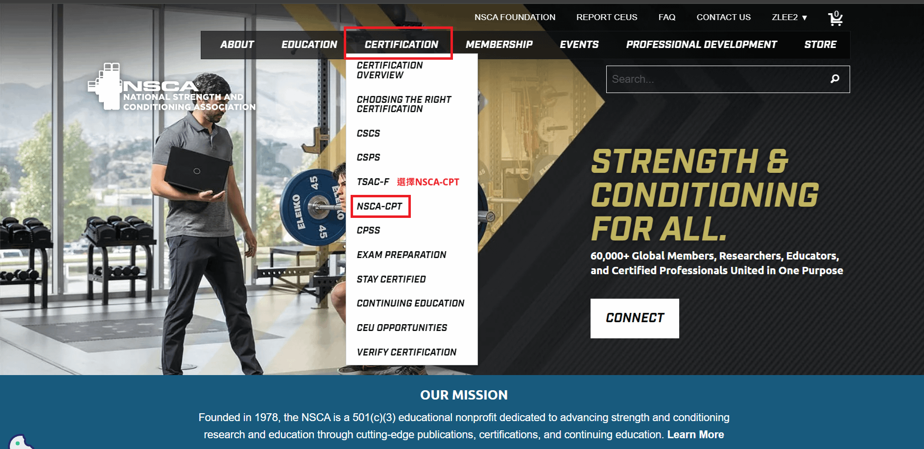 4️⃣NSCA官⽅⾸⾴選單Certification。