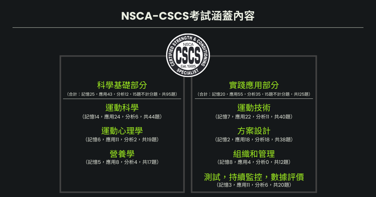 - NSCA-CSCS考試涵蓋內容。