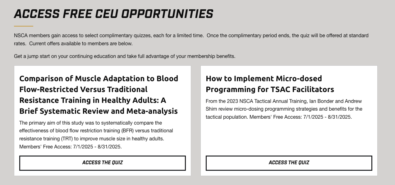 如果你的美國NSCA會員還沒到期,可以在美國官網上找到一些免費的學分,只要閱讀完文章或是看完影片,即可免費累積到0.2-0.5的學分,作答完之後,也記得將相關資訊截圖保存,然後上官網登記學分喔!