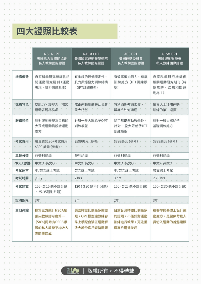 CPT證照滿天飛?一篇文章搞懂NSCA-CPT與其他證照的關鍵差異!